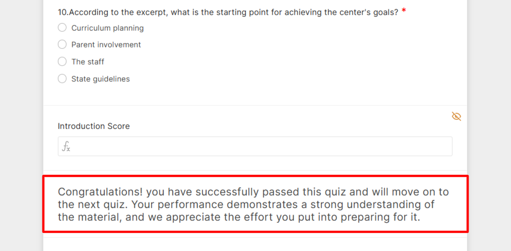 Congratulations! you have successfully passed this quiz and will move on to the next quiz. Your performance demonstrates a strong understanding of the material, and we appreciate the effort you put into preparing for it.
